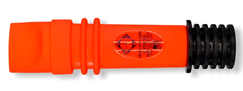 Gentle blowing creates exceptional & realistic rabbit distress. The voice system easily transitions from medium to long range raspy calling. Includes spring lanyard.